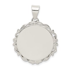 Sterling Silver Rh-plt Fancy Round Polished Front/Satin Back Pendant