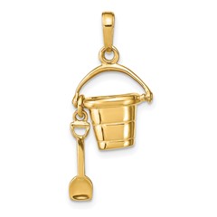 14k Polished 3-Dimensional Moveable Pail and Shovel Pendant