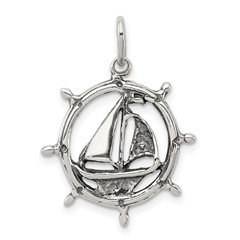 Sterling Silver Antiqued Sailboat in Wheel Charm