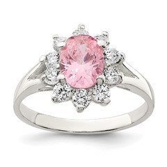 Sterling Silver Pink Round with Pavé Sides CZ Ring