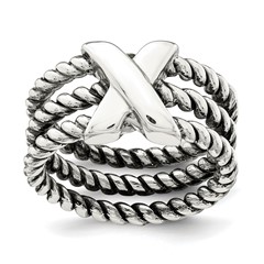 Sterling Silver Rhodium-plated Polished Fancy Ribbon Band