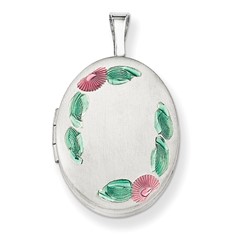 Sterling Silver With Enamel Flowers 19mm Oval Locket
