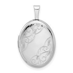 Sterling Silver Rhodium-plated Side Swirls 19mm Oval Locket
