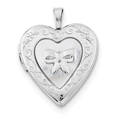 Sterling Silver Rhodium-plated 20mm Mother Of Pearl Bow Heart Locket