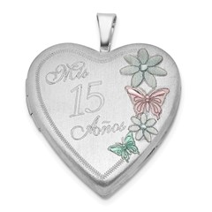 Sterling Silver 20mm Enameled Mis 15 Anos Heart Locket