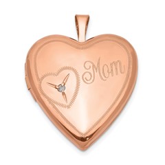 Sterling Silver Rose Gold-plated 20mm Mom with Diamond Heart Locket