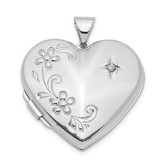 Sterling Silver Rhodium-plated and Dia. Polished 12mm Heart Locket
