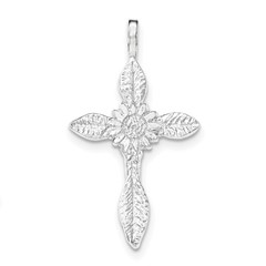 Sterling Silver Polished Floral Cross Chain Slide