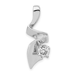 Sterling Silver Polished and Criss Cross CZ Leaf Chain Slide Pendant