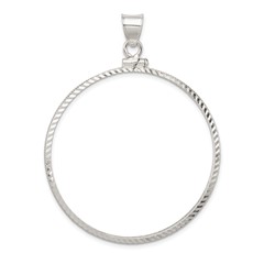 Sterling Silver 40.6 x 3.1mm Diamond Cut Coin Bezel Pendant