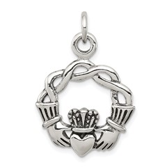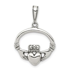 Sterling Silver Rhodium Plated CZ Claddagh Pendant