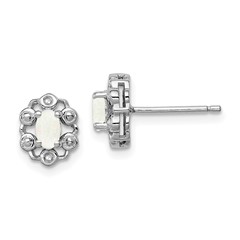 Sterling Silver Rhodium-plated Created Opal and Diam. Earrings