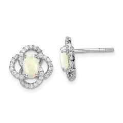 Sterling Silver Rhodium Plated CZ and Lab Created Opal Earrings