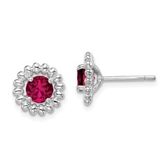 Sterling Silver Rhodium-plated 4mm Round Created Ruby Post Earrings