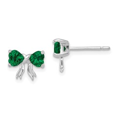 14k White Gold Polished Created Emerald Bow Post Earrings