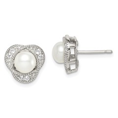 Sterling Silver Freshwater Cultured Pearl and White Topaz Post Earrings