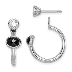 Sterling Silver Onyx and White Topaz Front and Back Hoop Earrings