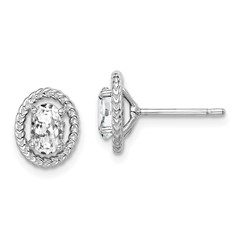 Sterling Silver Rhod-plat White Topaz Oval Post Earrings