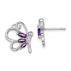 Sterling Silver Rhod-plat Amethyst Dragonfly Earrings