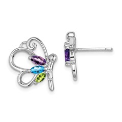 Sterling Silver Rhod-plat Amethyst, LB Topaz, Peridot Dragonfly Earrings