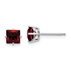 14k White Gold 5mm Princess Cut Garnet Earrings