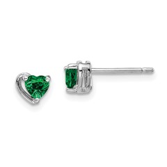 Sterling Silver Rhod-plated Created Emerald Heart Post Earrings