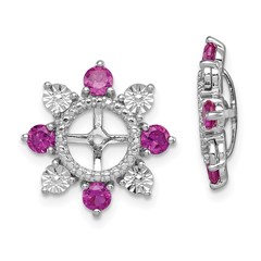 Sterling Silver Rhodium Created Ruby Earring Jacket