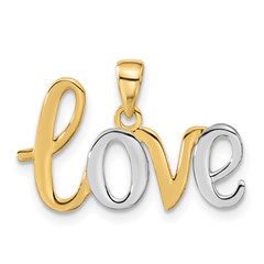 14k Two-Tone with White RH I love You In Filligree Heart and Flower Charm