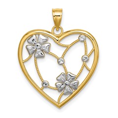 10K Two-tone and White Rhodium Polished Flower Heart Pendant