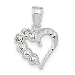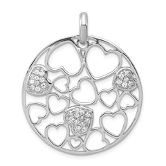 Sterling Silver Cut Out and CZ Hearts Circle Pendant