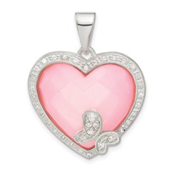 Sterling Silver Pink Mother of Pearl and CZ Heart Pendant