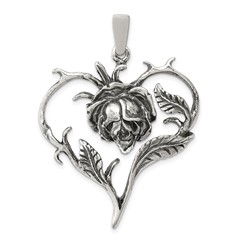 Sterling Silver Antiqued Rose Heart Pendant