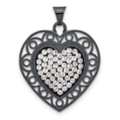 Sterling Silver Black Ceramic White Swarovski Elements Heart Pendant