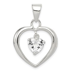 Sterling Silver CZ Heart Pendant