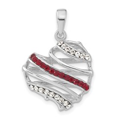 Sterling Silver Polished Dark Clear and Red Crystal Heart Pendant