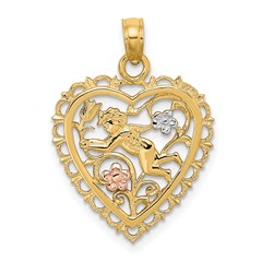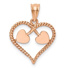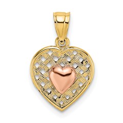 14k Yellow and Rose Gold Polished Heart On Woven Heart Charm