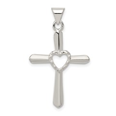 Sterling Silver Polished and Textured Cross with Heart Pendant