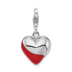 Sterling Silver Rhodium-plated 3-D Enameled Heart with Lobster Clasp Charm