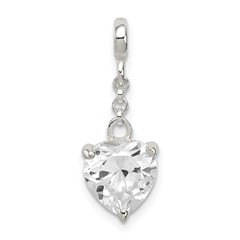 Sterling Silver Clear CZ Heart 1/2in Dangle Enhancer