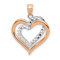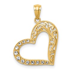 14K Two-tone Polished and Diamond-cut Hollow Heart Pendant