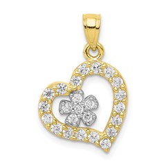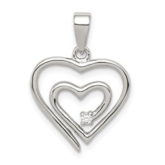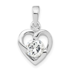 Sterling Silver Rhodium-plated Polished CZ Heart Pendant