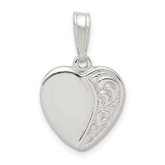 Sterling Silver Polished and Textured 'Mom' Engraved Heart Pendant