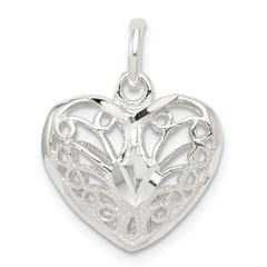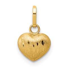 14k Reversible Satin and Diamond-cut Puffed Heart Charm