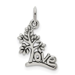 Sterling Silver Polished Enameled Red Hearts Tree Circle Pendant