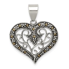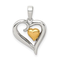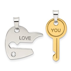 Sterling Silver and Gold-tone Crystal Heart/Key Breakapart Pendant