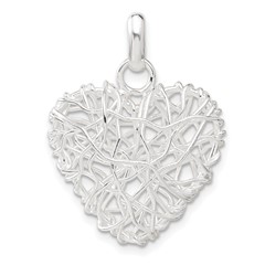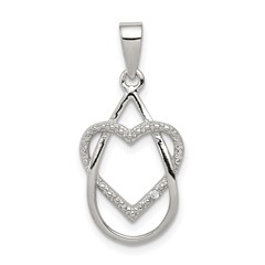 Sterling Silver Rhodium-plated Scratch Finish Heart Chain Slide