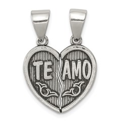 Sterling Silver Antiqued Te Amo Break Apart Heart Pendant