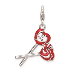 SS RH Enamel Red Heart Be Mine Lollipop with Lobster Clasp Charm