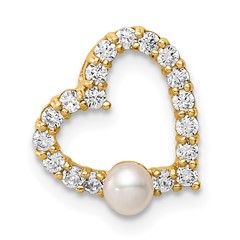 14K Madi K 3-4mm White Button FW Cultured Pearl CZ Heart Chain Slide