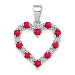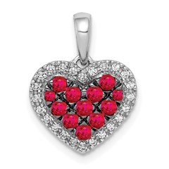 14K White Gold Diamond and .31 Ruby Heart Pendant